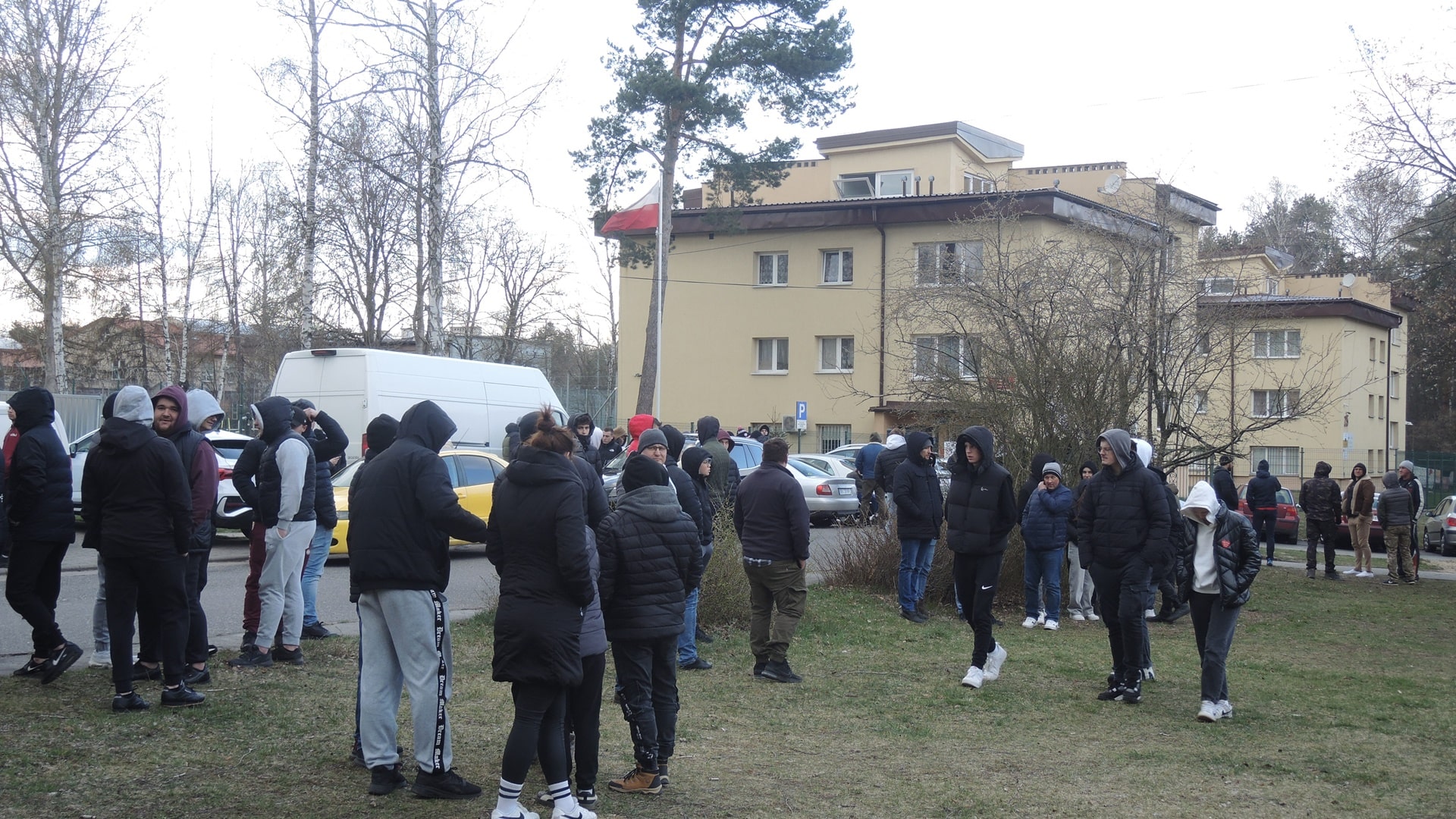 Przybyli twierdzili, że to spontaniczna akcja, która ma pokazać, że solidaryzują się z mieszkańcami osiedla, którzy obawiają się przebywających w ośrodku od niedawna nielegalnych migrantów.
