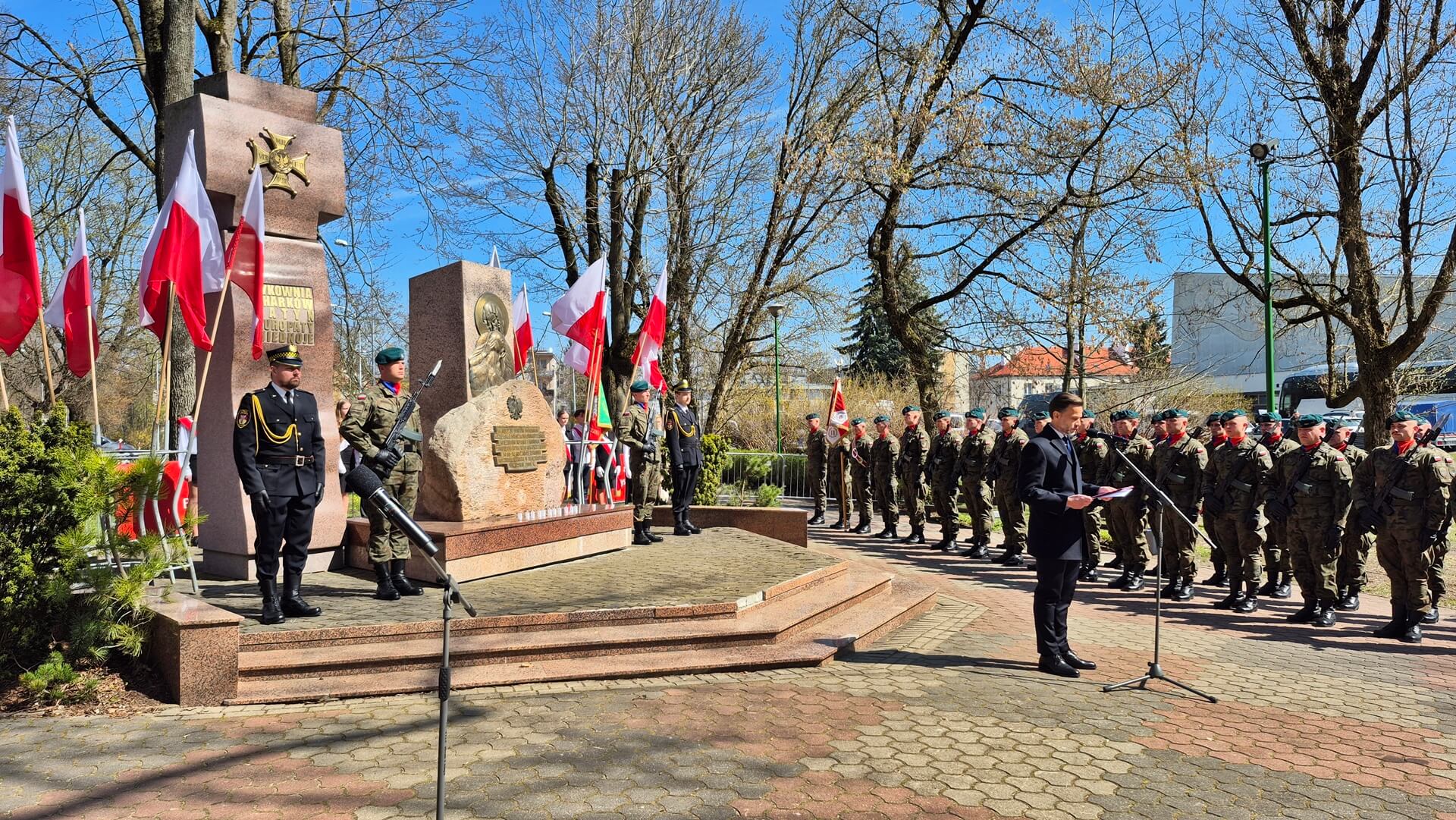 Wojewoda podlaski Jacek Brzozowski przywołując dokumenty historyczne przypomniał, że ofiary zbrodni katyńskiej rozstrzelano strzałem w tył głowy za to, że zostali uznani za wrogów sowieckiej władzy i systemu. Dodał, że zbrodnia ta to symbol wszystkich sowieckich zbrodni wymierzonych w Polaków, "wizytówka totalitaryzmu sowieckiego". Podkreślił, że żadna z osób odpowiedzialnych za zbrodnię katyńską nie poniosła konsekwencji za swoje czyny ani kary za nie.