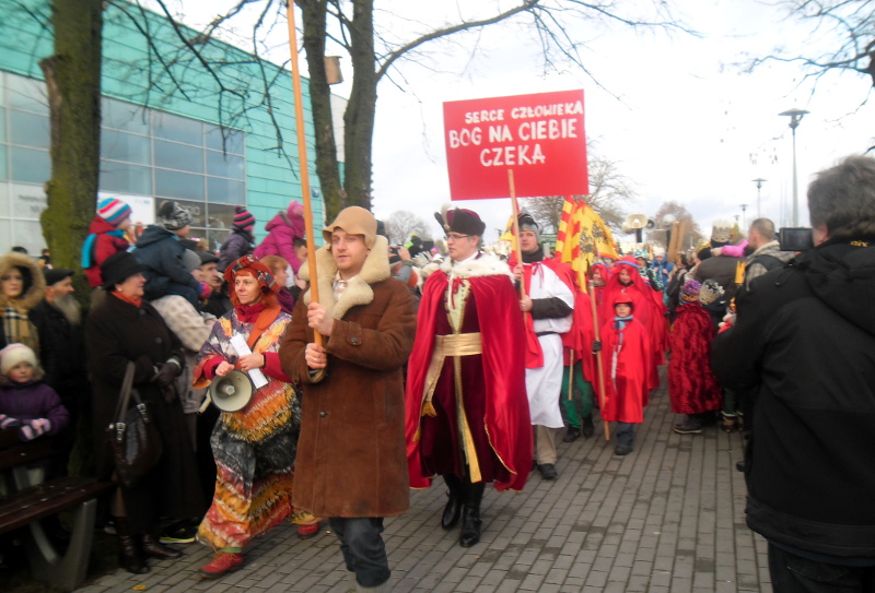 W tym roku w postaci mędrców: Kacpra, Melchiora i Baltazara, podróżujących na występujących w rolach wierzchowców samochodach terenowych, wcielili się parafianie, a towarzyszył im liczny orszak pasterzy i aniołów oraz królów w papierowych koronach.