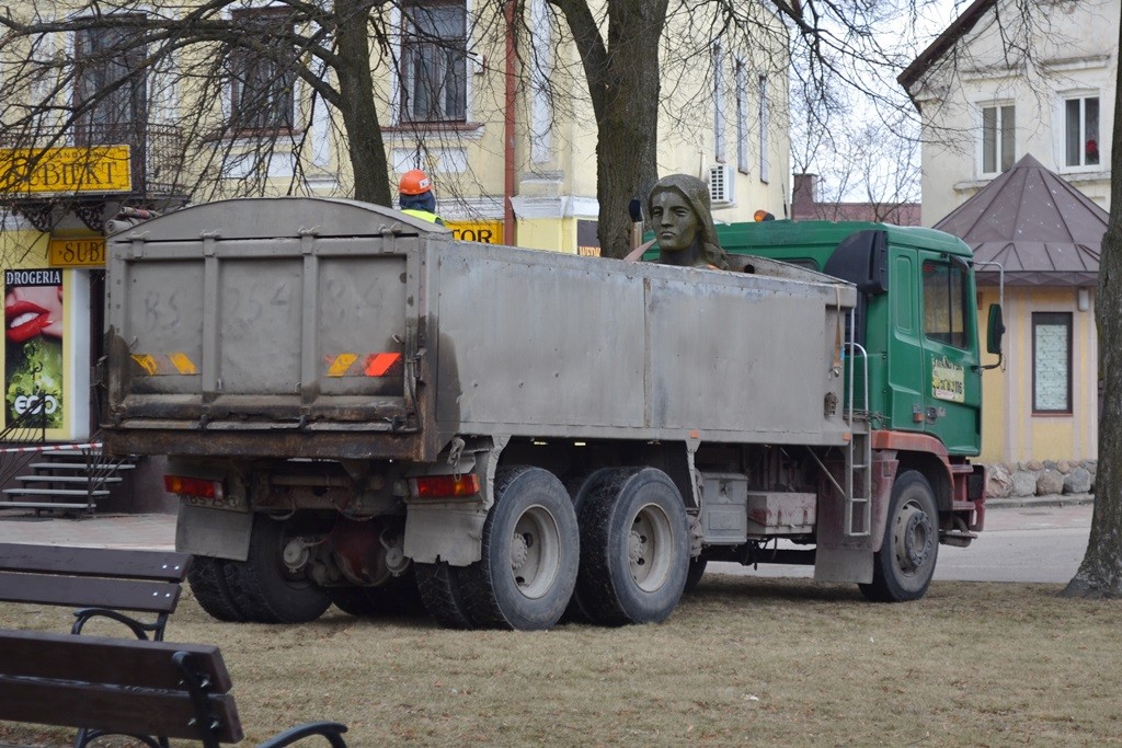 Pomnik zdemontowany został w marcu. Niemal 10-metrowy monument składał się z figury kobiety z mieczem oraz cokołu, na którym widniał orzeł bez korony, sylwetki czerwonoarmistów i hasła gloryfikujące ustrój komunistyczny. Jego rozbiórkę wymusiła ustawa dekomunizacyjna.