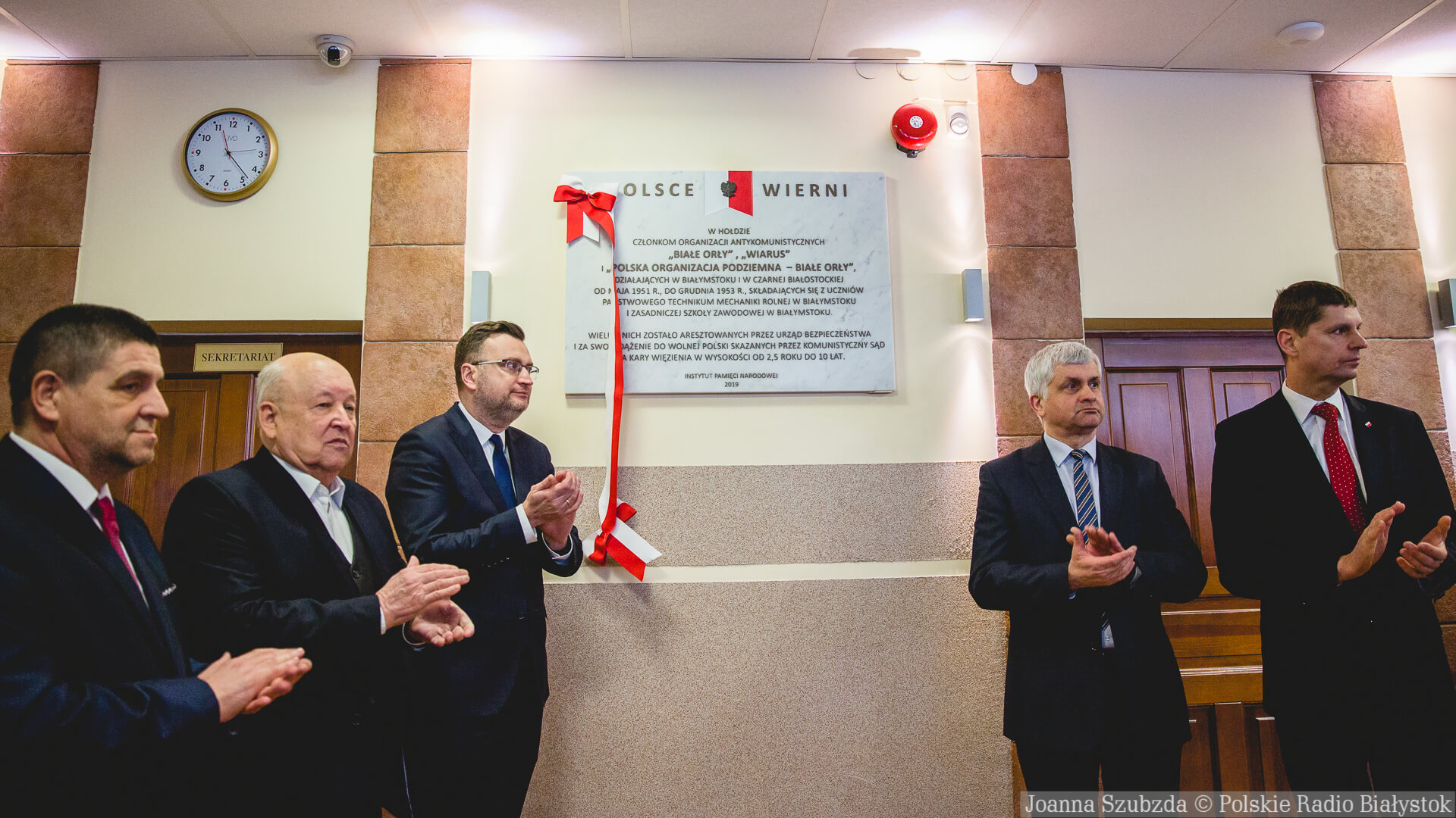 W uroczystości w Białymstoku wzięli udział m.in. przedstawiciele władz państwowych i samorządowych, grupa byłych członków młodzieżowych organizacji konspiracyjnych, służby mundurowe, młodzież i nauczyciele Zespołu Szkół Ogólnokształcących i Technicznych; w głównym holu tej szkoły odsłonięta została w piątek ta tablica.