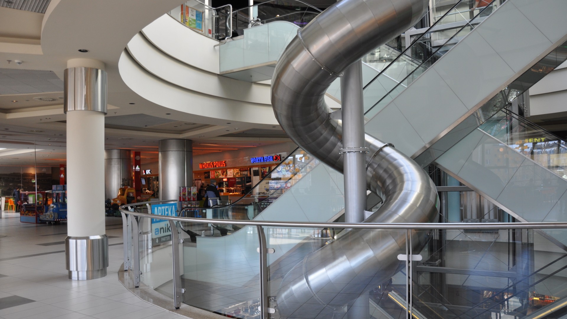 Wykonano ją z polerowanej stali nierdzewnej. Klienci galerii, bez względu na wiek, przyglądają się konstrukcji z dużym zaciekawieniem. Symboliczne przecięcie wstęgi odbędzie się w czwartek o godz. 9. A potem organizatorzy zaplanowali liczne atrakcje aż do godz. 18. Zjeżdżalnia będzie darmowa, a korzystać będzie z niej mógł każdy poniżej 150 kg wagi.