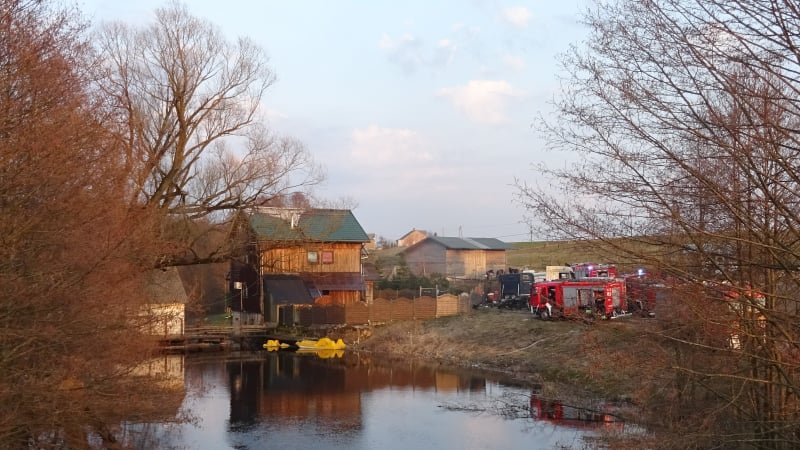 Pożar młyna wodnego we wsi Małe Raczki - dzięki szybkiej akcji strażacy uratowali drewniany budynek