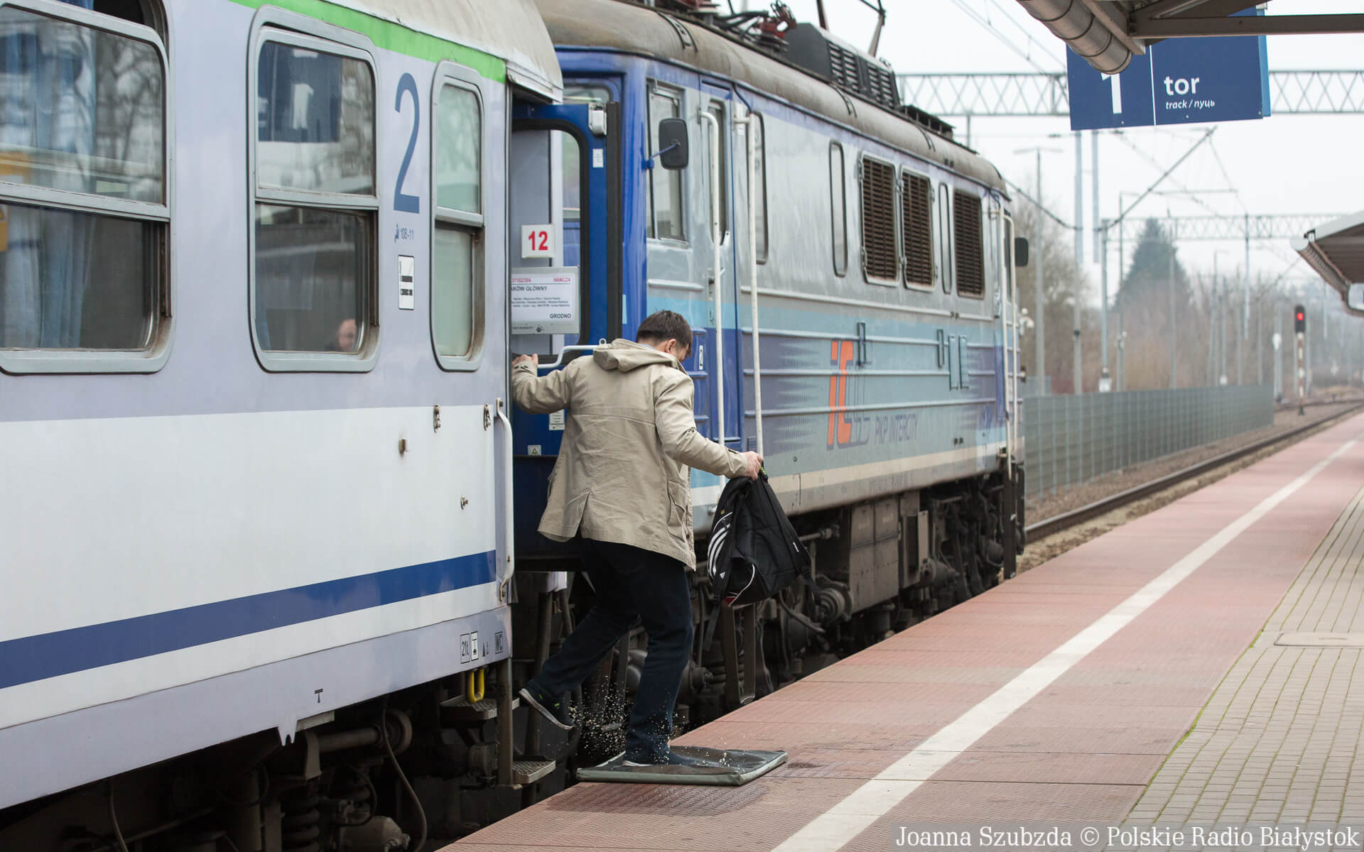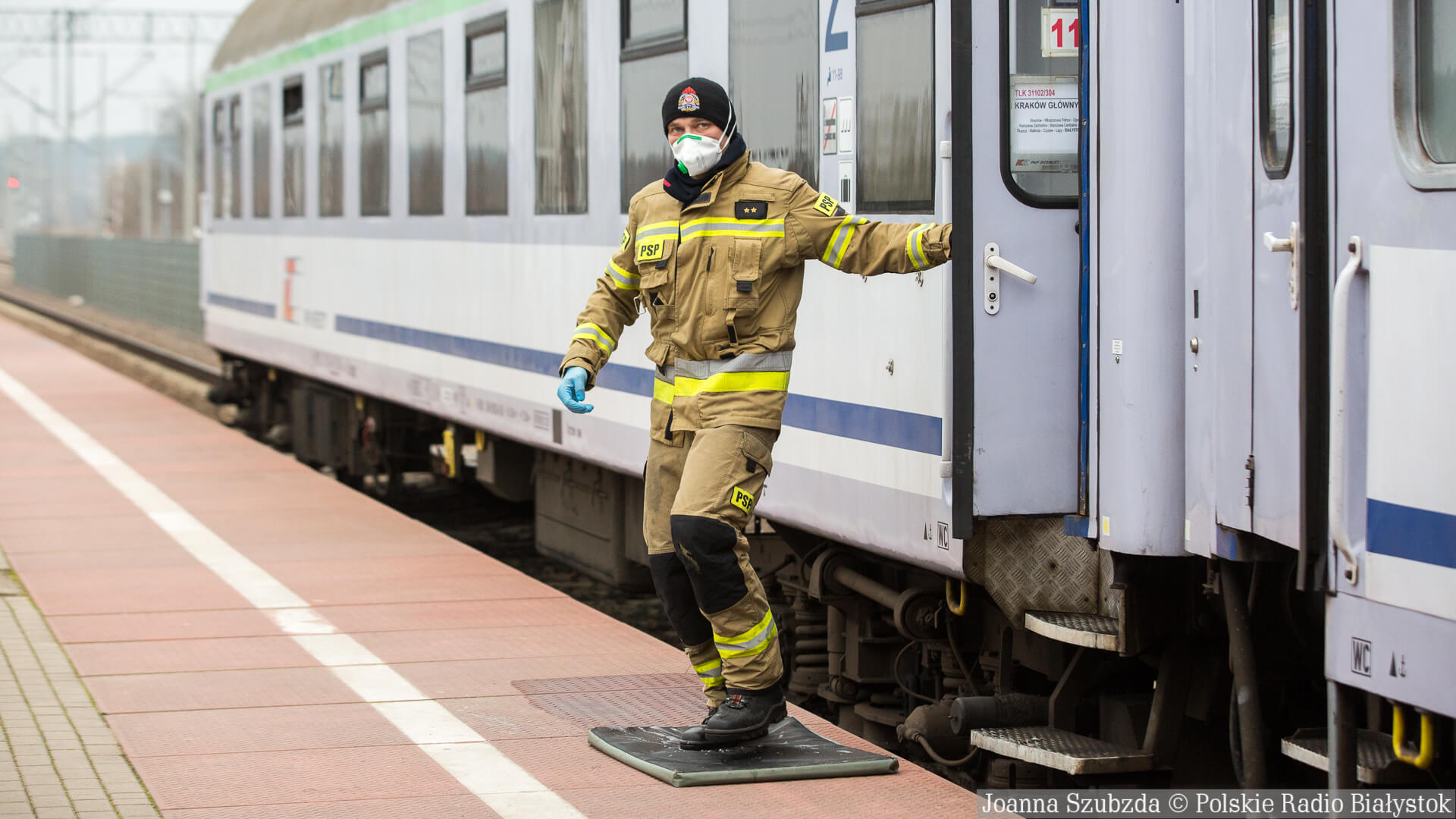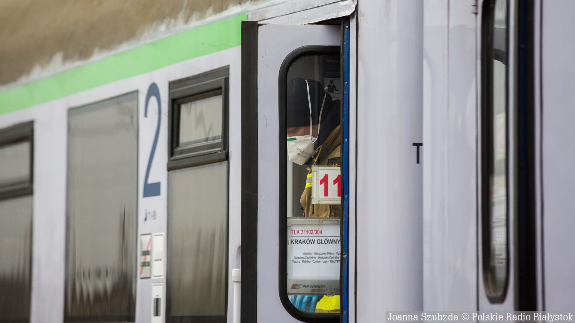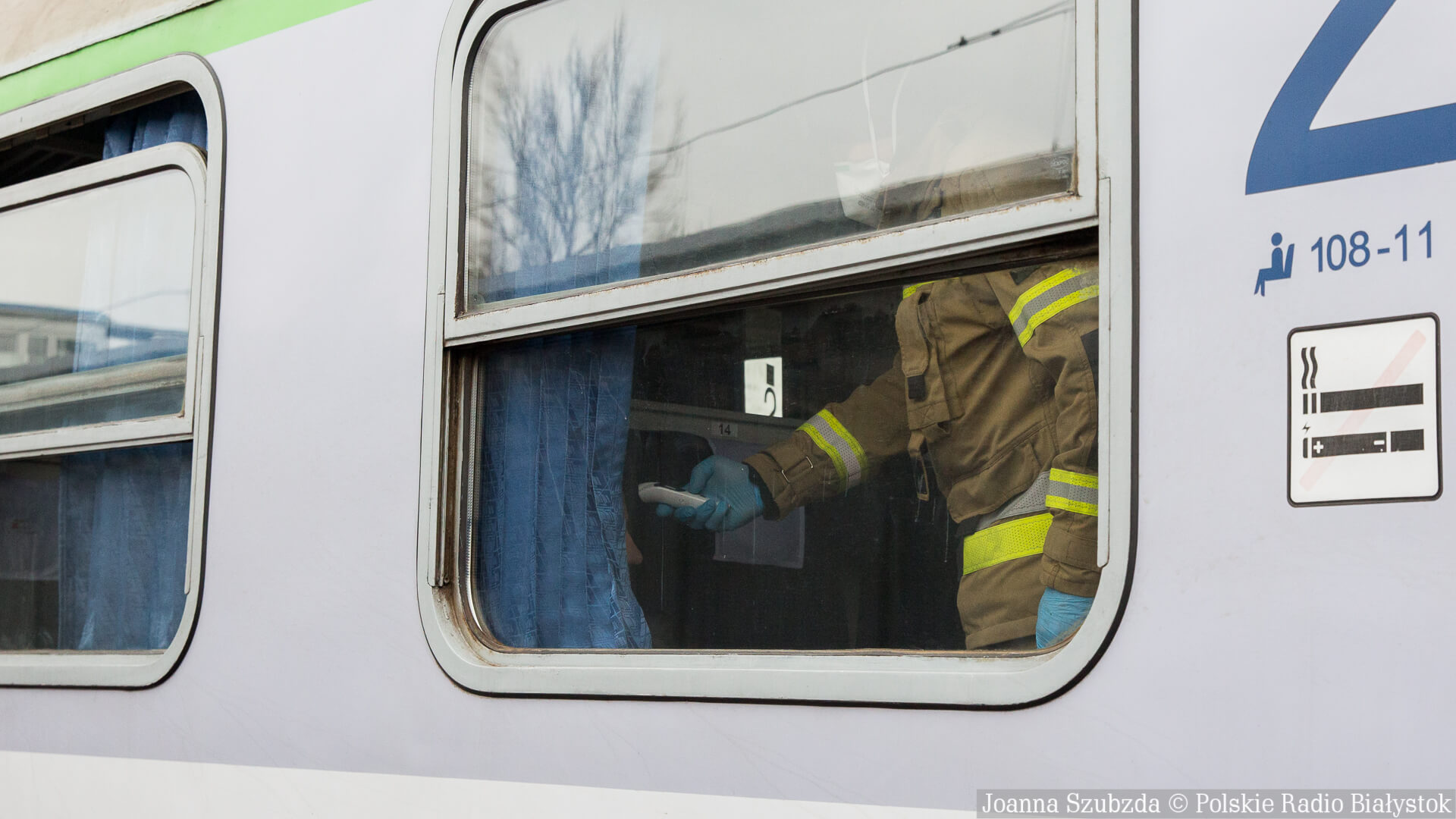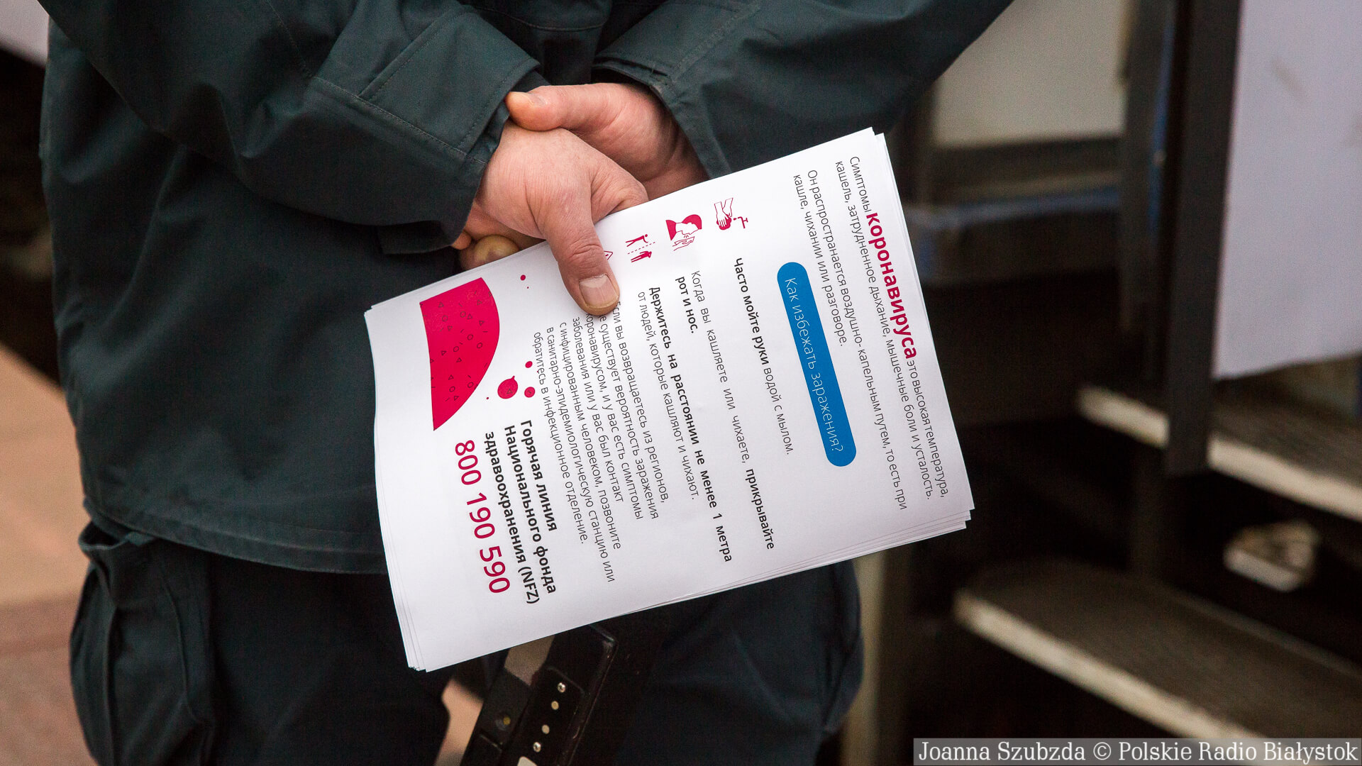 Pasażerowie pociągu relacji Grodno - Białystok - Kraków na przejściu w Kuźnicy dostawali też ulotki w języku rosyjskim z instrukcjami dotyczącymi postępowania w przypadku zachowania.