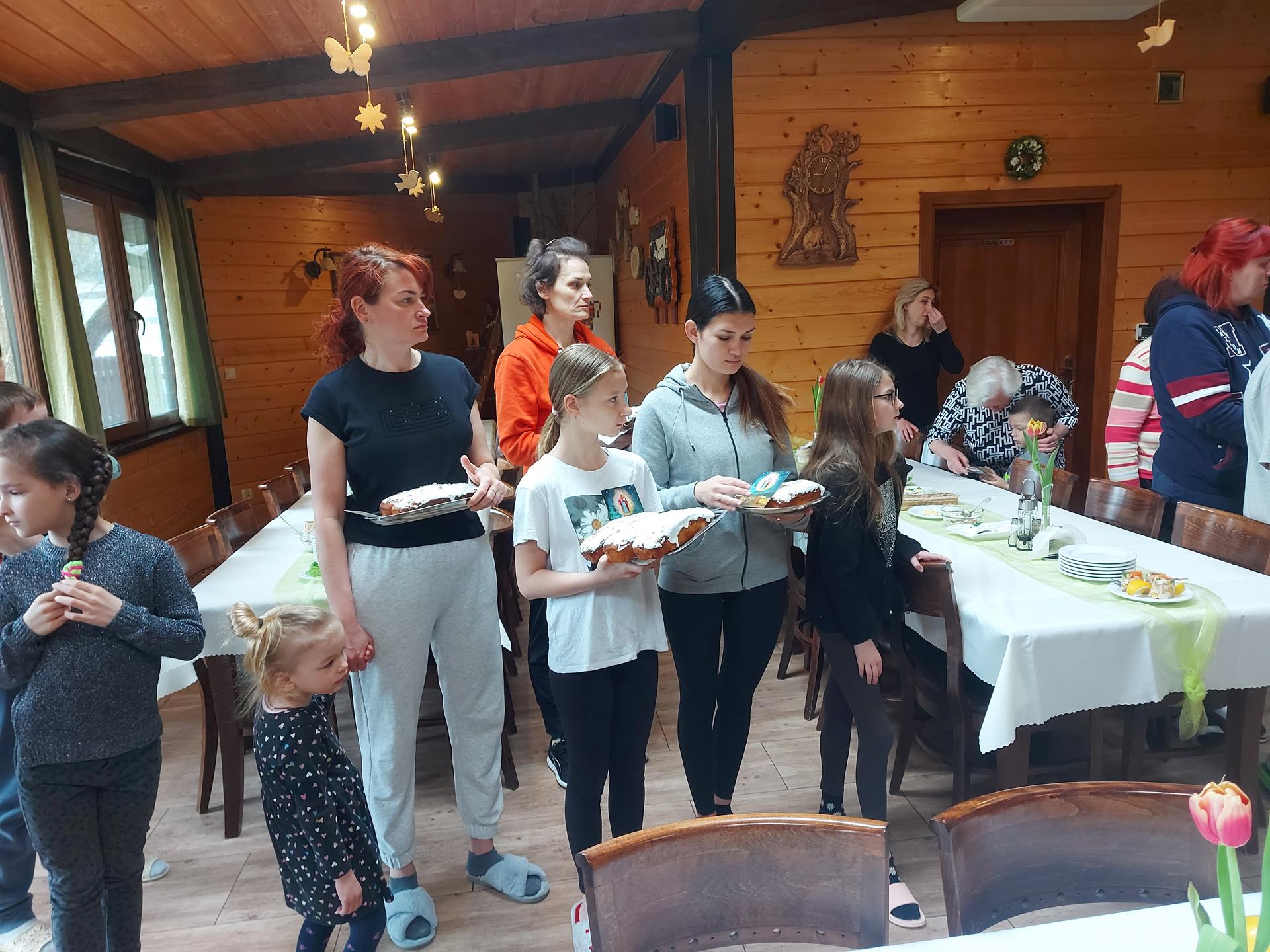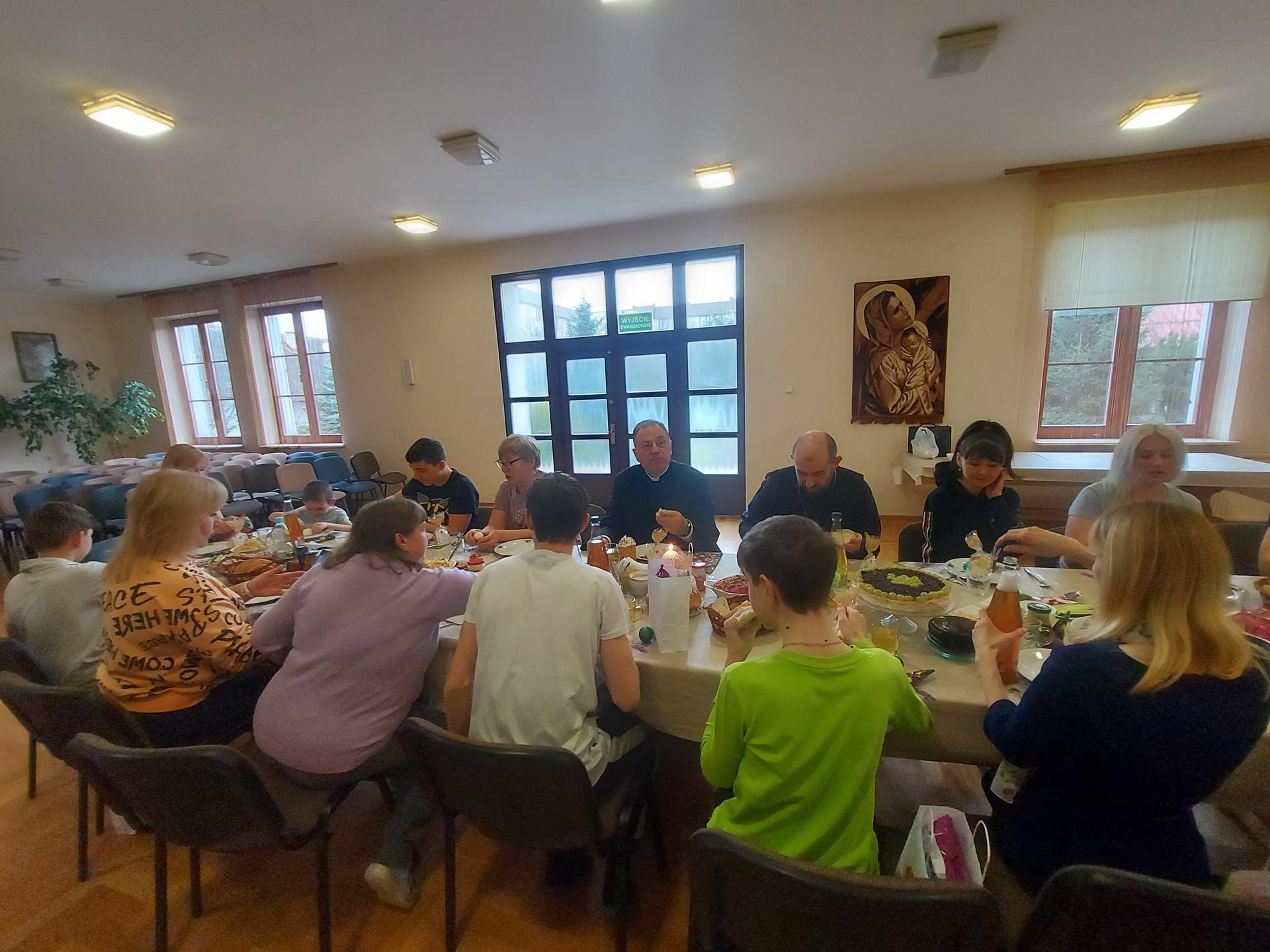 Caritas Diecezji Ełckiej wielkanocne śniadanie dla ukraińskich uchodźców w Augustowie zorganizował w Domu Księży Emerytów, w ośrodku wypoczynkowym BPIS oraz hotelach: Villa Skomanda i Salas.