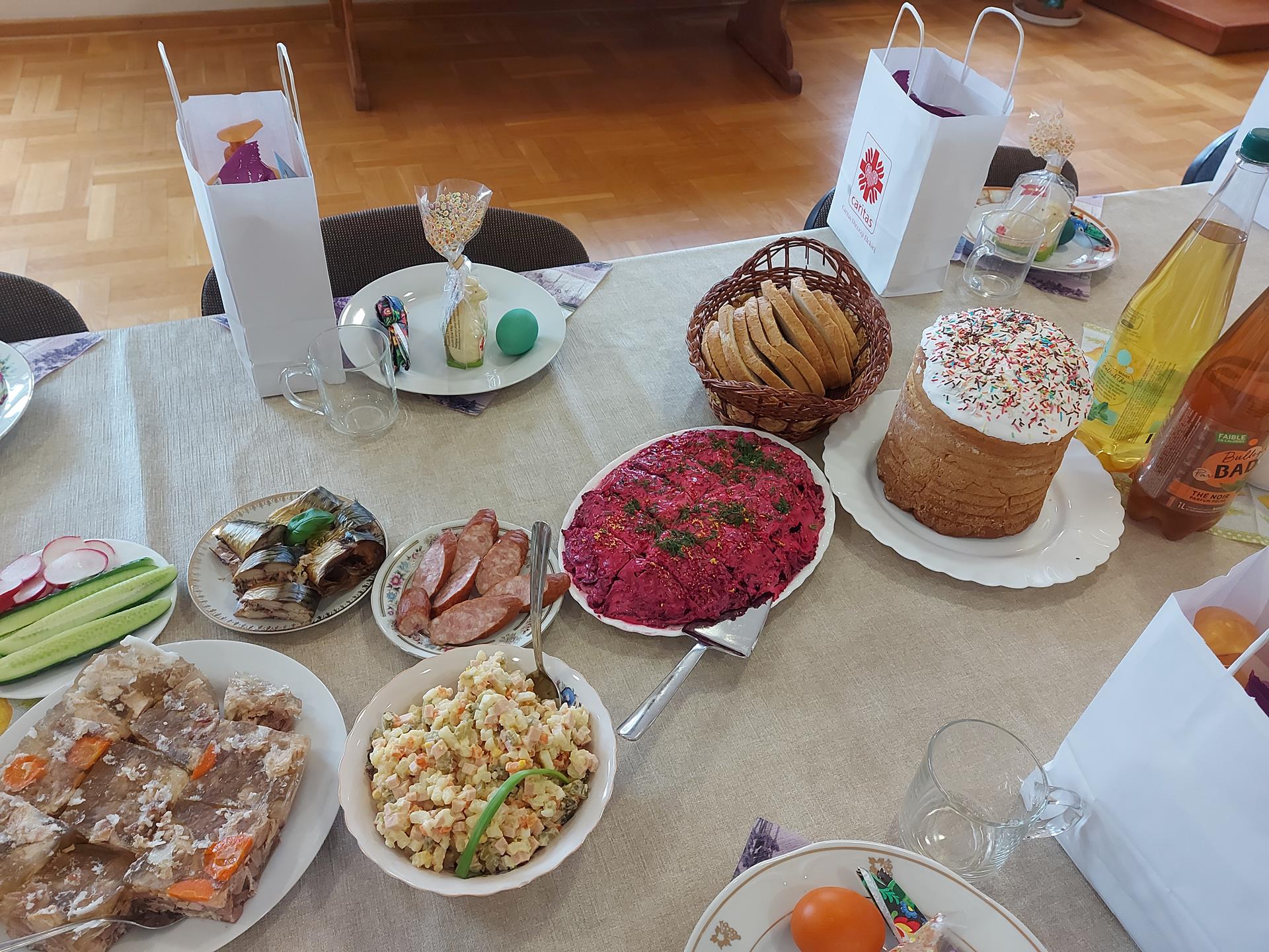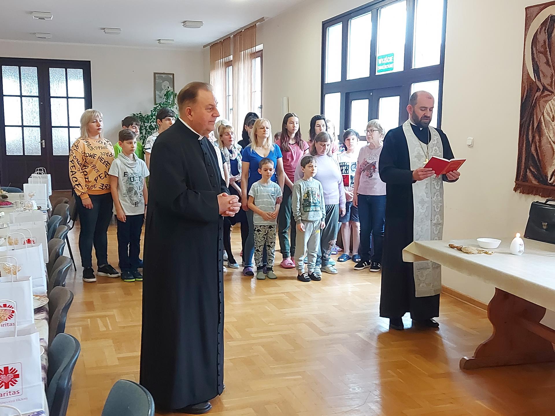 Śniadanie wielkanocne dla uchodźców z Ukrainy w kilku ośrodkach w Augustowie zorganizowała Caritas Diecezji Ełckiej przy wsparciu województwa podlaskiego. Podobne śniadanie odbyło się też w Łomży.