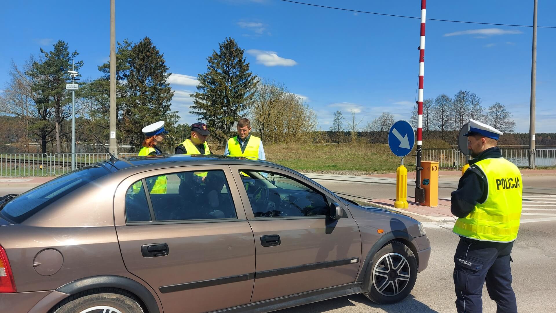 Zatrzymywano kierowców jadących ulicą Turystyczną i przypominano im przepisy obowiązujące na skrzyżowaniach torów z jezdniami.