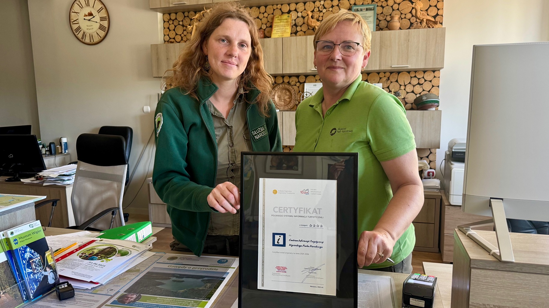 - Pracują tu osoby, które bardzo dobrze znają teren i posługują się językiem angielskim, włoskim i niemieckim. Jesteśmy też przewodnikami – oprowadzamy grupy po całym województwie. Wypożyczamy rowery, pomagamy biurom podróży układać programy wycieczek, organizujemy bezpłatne pieszo-rowerowe wyprawy. Współpracujemy z bazą noclegową, wypożyczalniami kajaków i innymi podmiotami turystycznymi. Bierzemy udział w targach turystycznych, gdzie promujemy park. Pracujemy od rana do nocy.